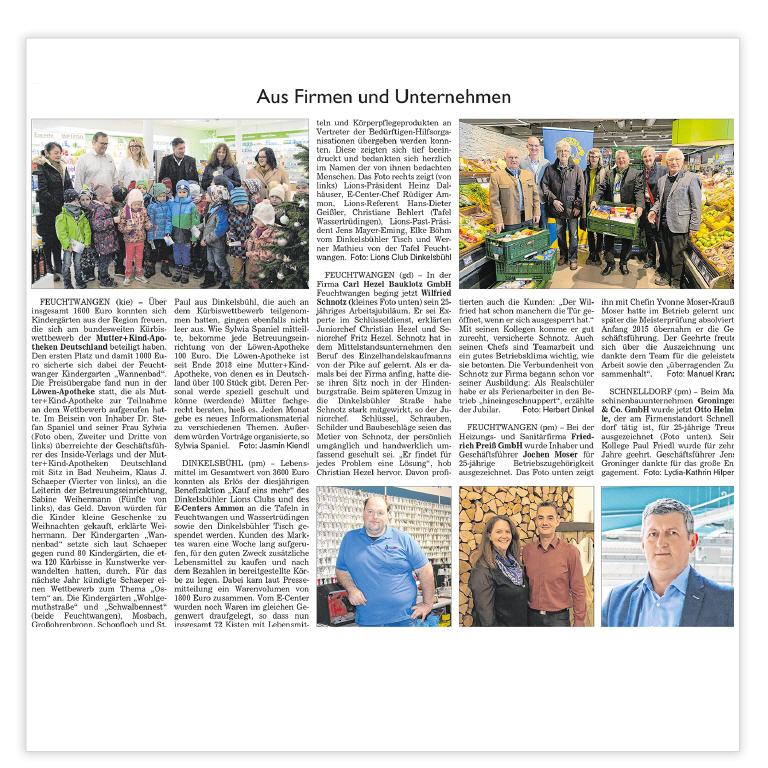 In Feuchtwangens Mutter+Kind Apotheke, der Löwen Apotheke unter der Leitung von Herrn Dr. Stefan Spaniel, wurde der Preis von 1000,- € an die Kita Leiterin übergeben.